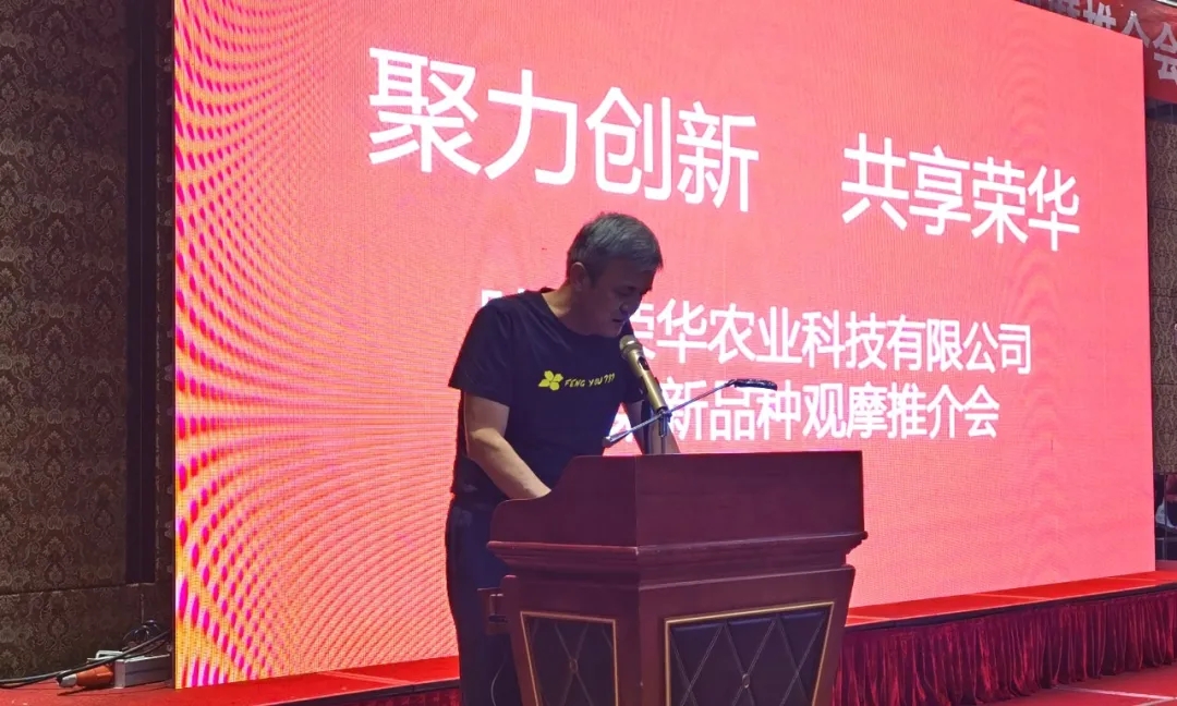 榮華公司技術(shù)總監(jiān)劉引祥向大家專題匯報“深刻認識灃油737特殊種性、用科學(xué)方法提升種植效益”,重點介紹了灃油737當(dāng)前生產(chǎn)上存在的問題與改進措施。榮華公司董事長周軒作總結(jié)發(fā)言,對廣大經(jīng)銷商多年來給予榮華公司的高度信任與支持深表感謝,并簡要回顧了榮華公司發(fā)展歷程、品種研發(fā)策略和品種優(yōu)勢,建議大家充分認識灃油737品種的價值與意義和按照各自區(qū)域市場需求選擇合適的新品種。