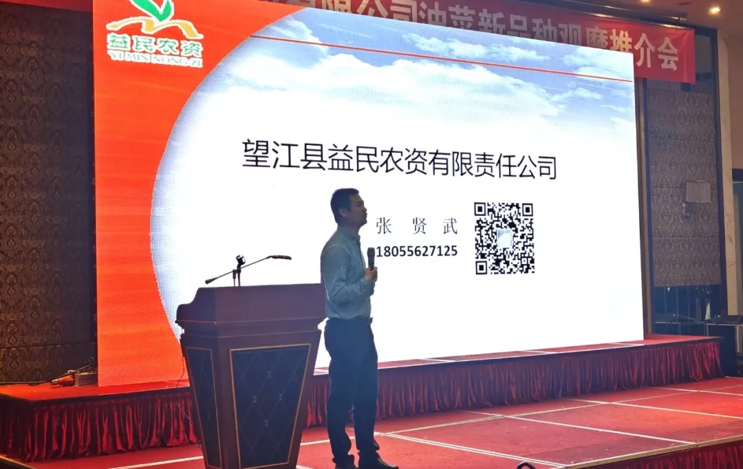 望江縣農(nóng)業(yè)農(nóng)村局陶博士致辭,充分肯定了榮華公司推廣的油菜品種對望江油菜產(chǎn)業(yè)發(fā)展的作用。