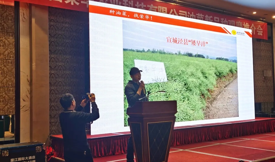 本次推介會隆重發(fā)布了6個油菜新品種:“矮早灃”是早熟矮桿耐病耐肥抗倒油菜新品種,適宜區(qū)域為長江流域。“秦優(yōu)1618”是大角大粒高產(chǎn)高油強抗倒油菜新品種,適宜區(qū)域為黃淮、長江和春油菜區(qū)。“秦優(yōu)DK4”是早熟抗倒高油高產(chǎn)抗根腫病油菜新品種,綜合農(nóng)藝性狀突出,適宜區(qū)域為長江流域。“神農(nóng)油828、華灃油738”是高產(chǎn)、高油、高抗類雜交油菜新品種,適宜區(qū)域為長江流域。“寧R201”抗磺酰脲類除草劑,可有效應(yīng)對田間自生辣菜危害,它不僅僅是抗除草劑品種,產(chǎn)量高、含油量高、抗倒性很強,登記區(qū)域為江蘇冬油菜區(qū),目前正在擴區(qū)長江中、下游區(qū)。這批新品種豐富了榮華油菜現(xiàn)有品種結(jié)構(gòu),大大擴展了榮華油菜品種的使用功能,增強了廣大經(jīng)銷商合作的信心,對進一步提升榮華油菜品種市場競爭力,保證公司持續(xù)發(fā)展將產(chǎn)生重要的作用,會議取得圓滿成功!