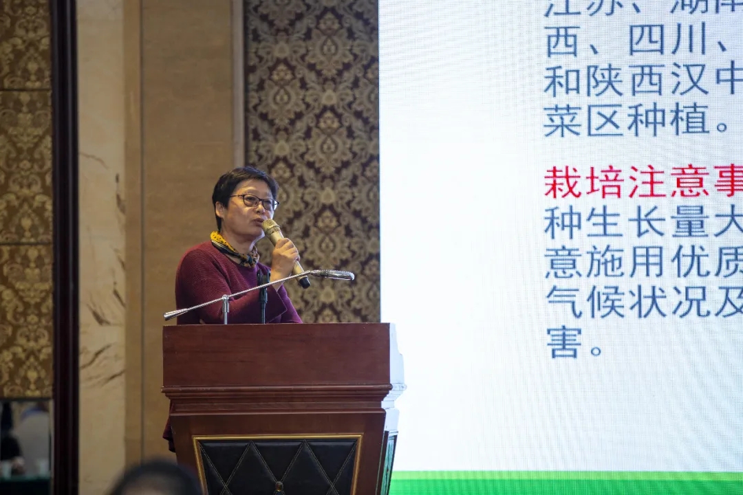 榮華公司研發(fā)部李冬肖研究員介紹了公司自主選育的“神農(nóng)油828”、“華灃油738”及江蘇省農(nóng)科院選育的除草劑油菜新品種“寧R201”參試表現(xiàn)與主要特點。