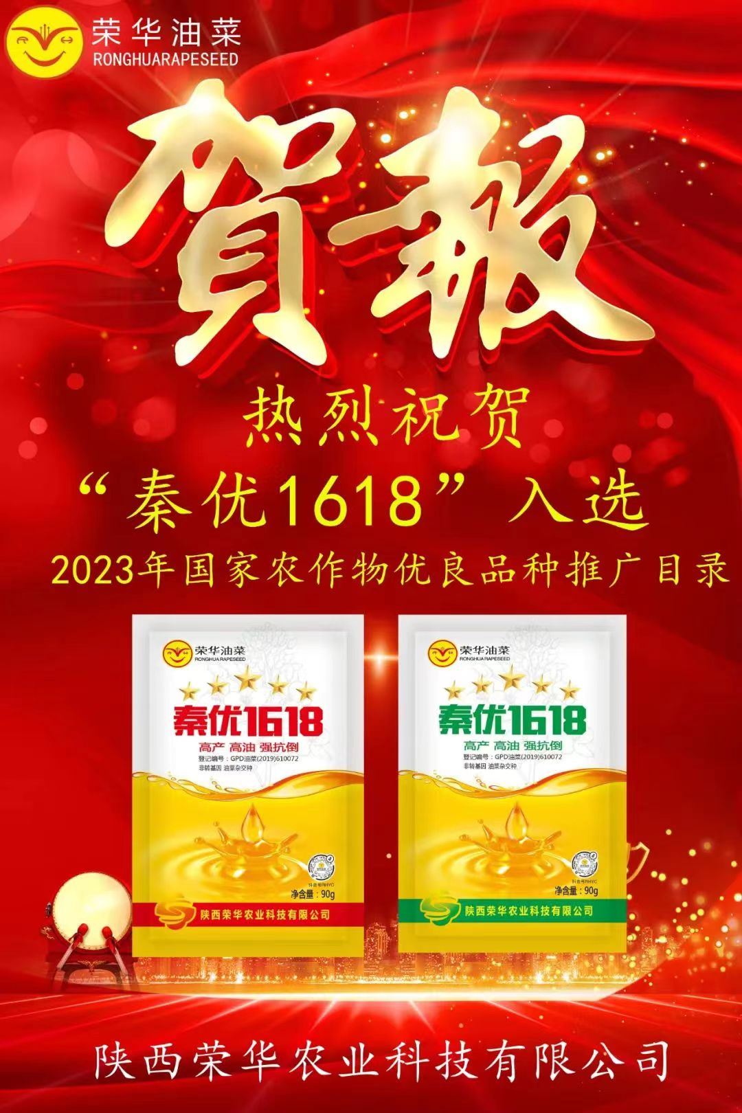近日,農(nóng)業(yè)農(nóng)村部發(fā)布《國家農(nóng)作物優(yōu)良品種推廣目錄(2023年)》,重點推介10種農(nóng)作物、241個優(yōu)良品種,旨在加快推廣應(yīng)用步伐,促進(jìn)大面積生產(chǎn)單產(chǎn)水平提升。陜西榮華農(nóng)業(yè)科技有限公司開發(fā)推廣的“灃油737”、“秦優(yōu)10號”、“秦優(yōu)1618”、“灃油320”四個品種入選。