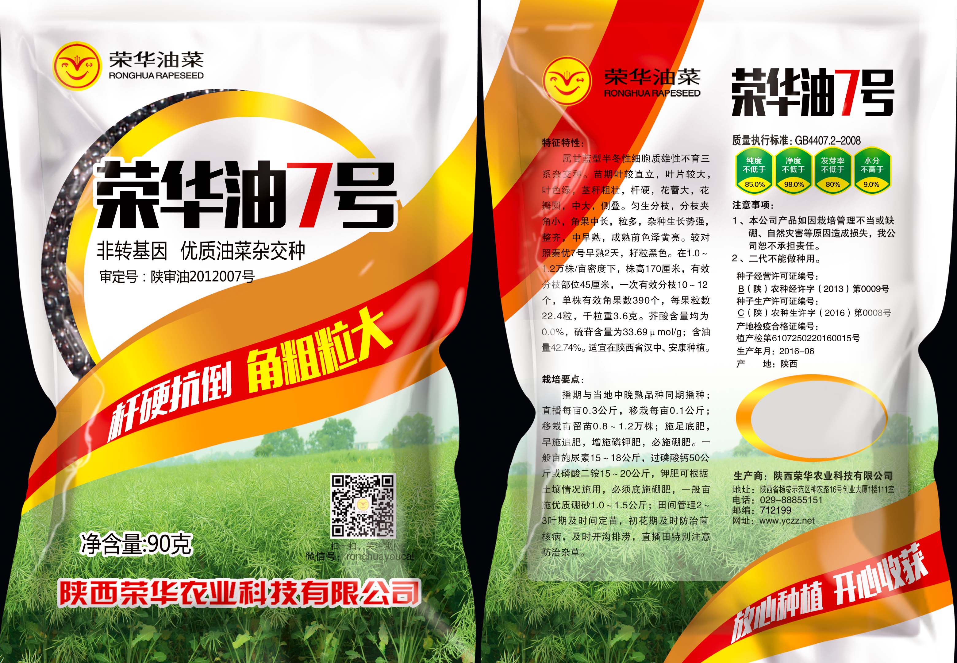 榮華油7號(hào)(審定編號(hào):陜審油2012007)是陜西榮華農(nóng)業(yè)科技有限公司自主選育的甘藍(lán)型、半冬性細(xì)胞質(zhì)雄性不育三系雜交種,適宜在陜西漢中、安康和生態(tài)類型相似區(qū)域種植。該品種分枝部位低、分枝數(shù)多、分枝夾角小、株型緊湊、適合密植和機(jī)械化收割,抗倒性強(qiáng),中抗菌核病,是目前生產(chǎn)上輕簡化栽培的最優(yōu)品種之一。